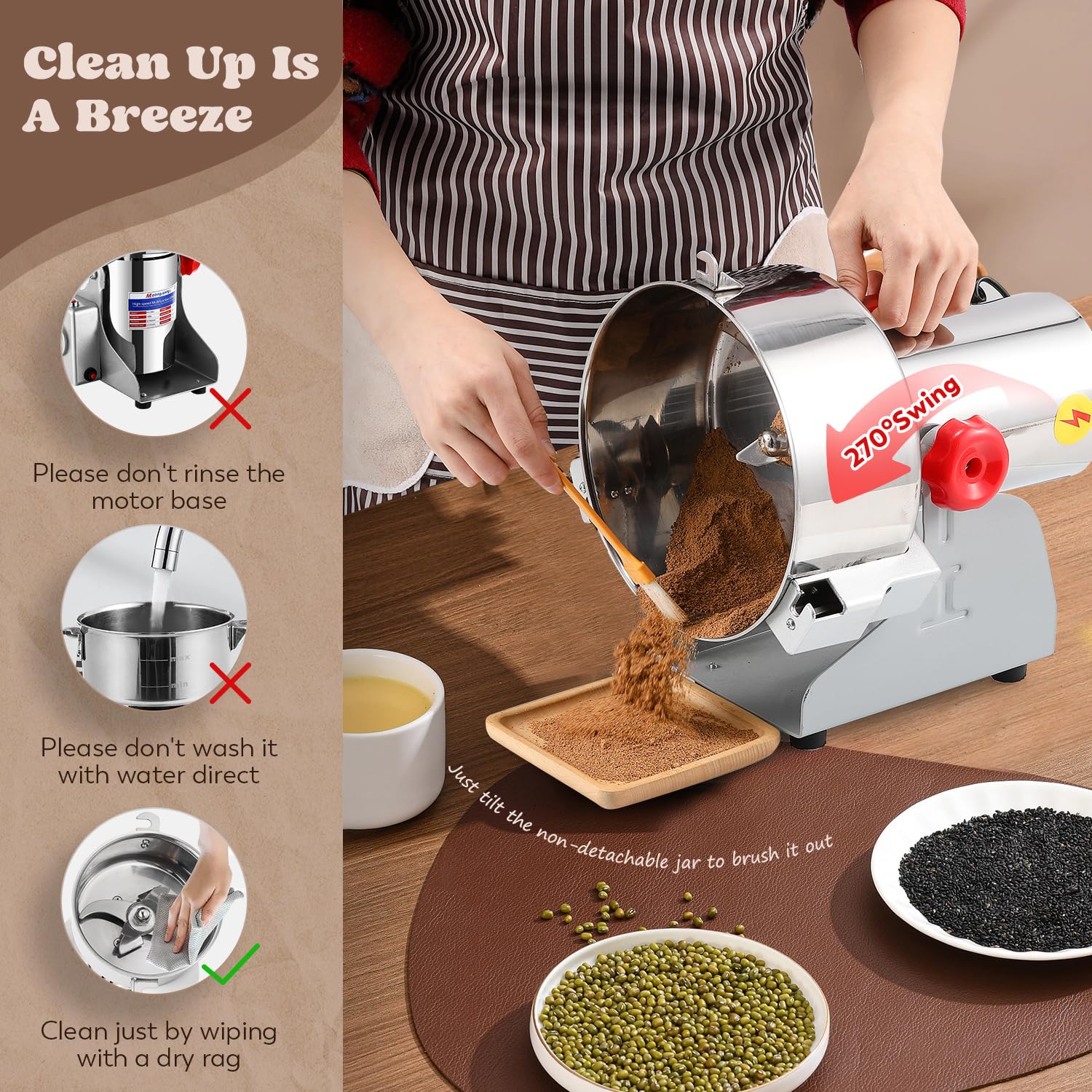 Moongiantgo 2500g Grain Mill Grinder Commercial Spice Grinder 3600W Stainless Steel Electric Pulverizer Dry Grinding Machine for Wheat Corn Rice Pepper Herbs Coffee Beans (2500g Swing, 110V)