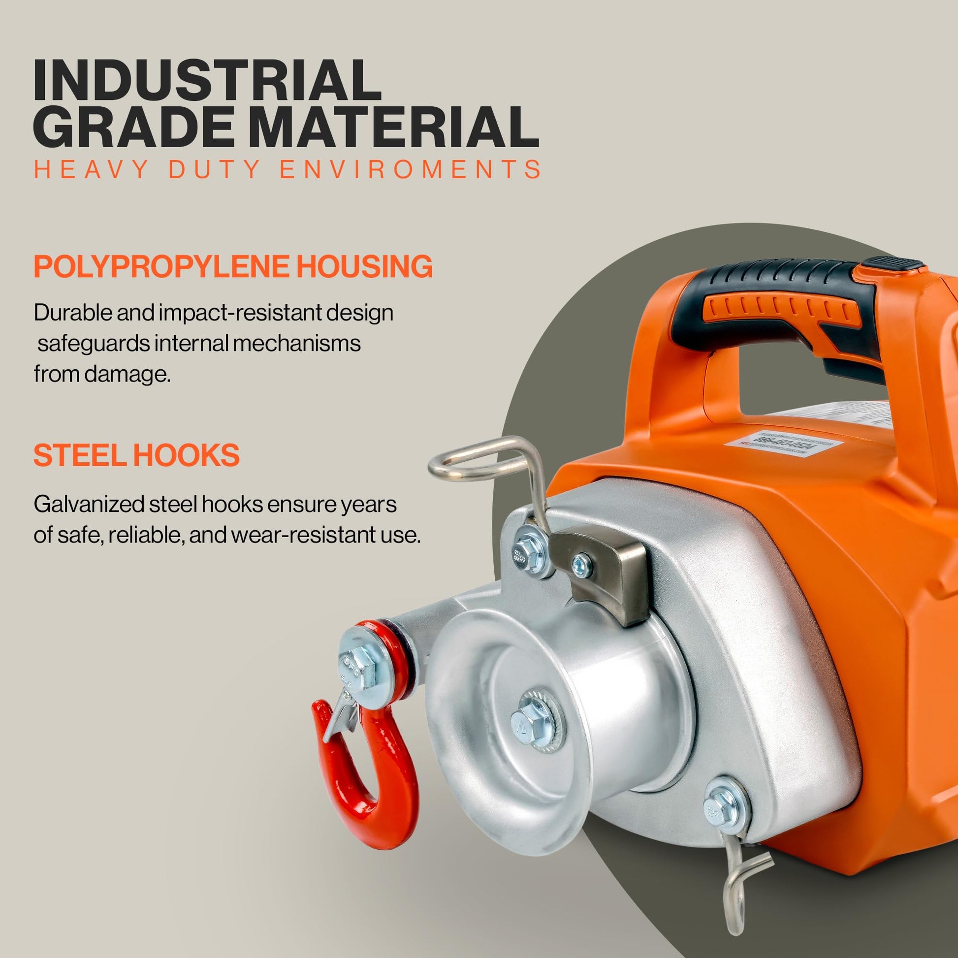 - POWERFUL DESIGN - Our powerful Brushless Motor utilizes Steel planetary gears that can work continuously all day long & year-round throughout the season, while the engine requires zero maintenance; This Portable Capstan Winch can be operated in -30 degrees Celsius temperatures without affecting its autonomy or performance