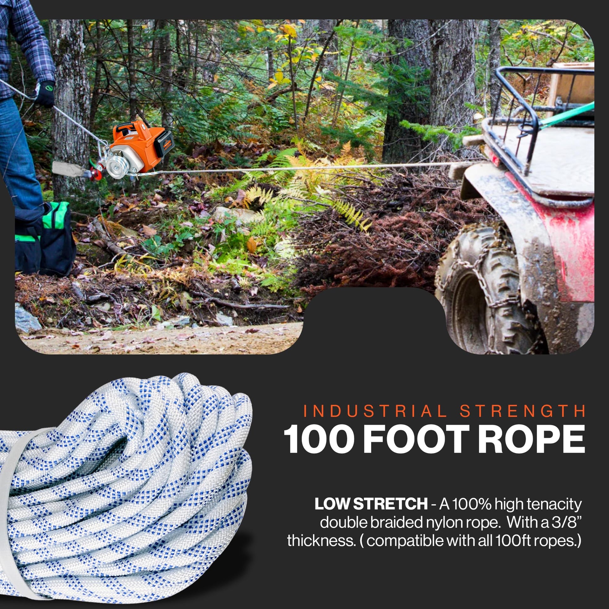 - PROFESSIONAL SPECS - This Portable Capstan Winch is a DC 48V 1296W Max All-Electric System; Max Load Capacities: Single Line Pulling Force: 1000LBS / 454kgs & Double Line Pulling Force: 2000LBS / 908kgs; This Capstan Winch is to ONLY to be used with a High-Performance Low Stretch Rope of 100' Feet 3/8" Diameter (0.39"-0.47" Inches / 10mm~12mm) or unlimited rope length is applicable